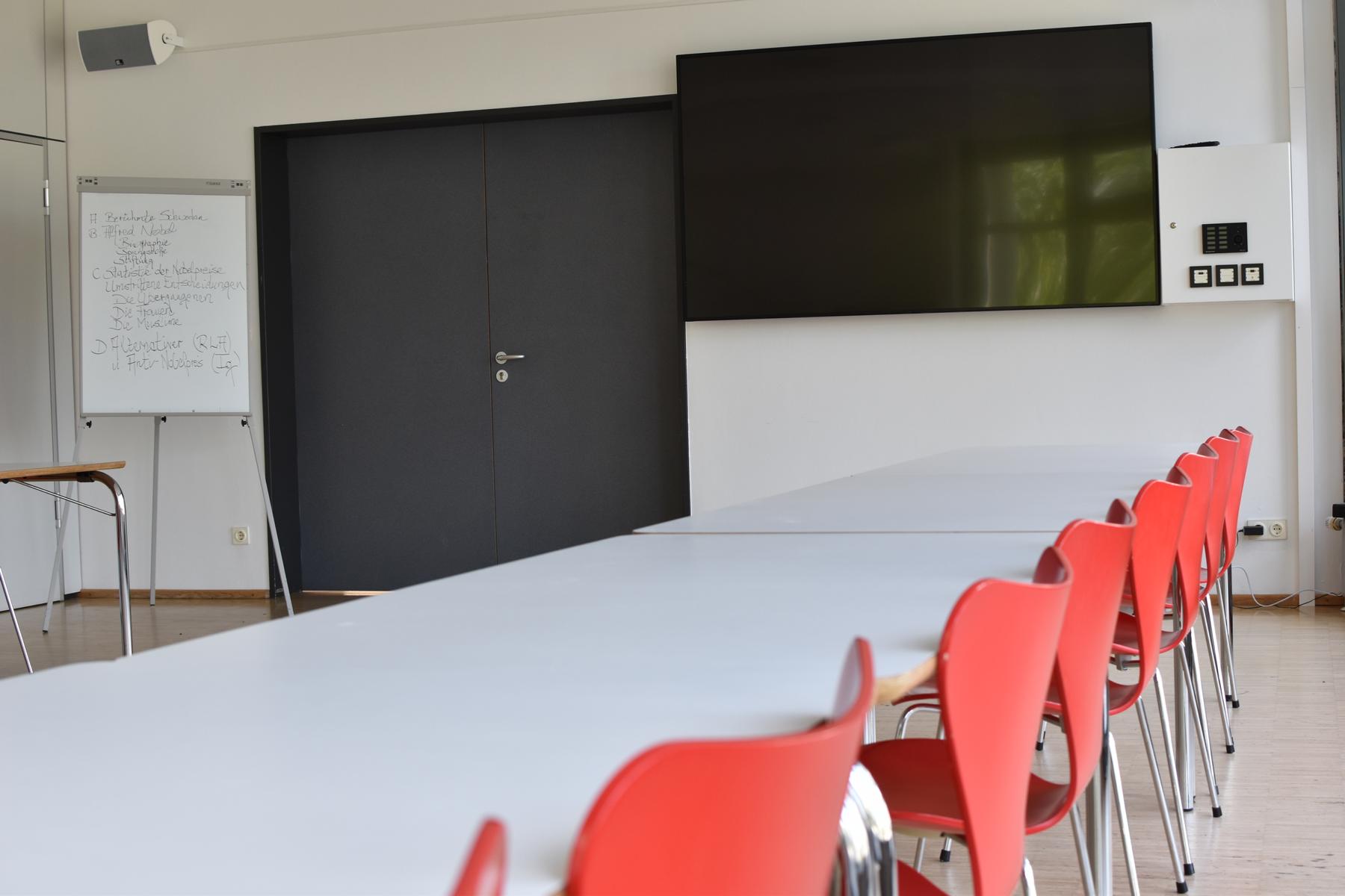 - Modern media technology with display and speakers (HDMI and VGA input; please bring your own cable)